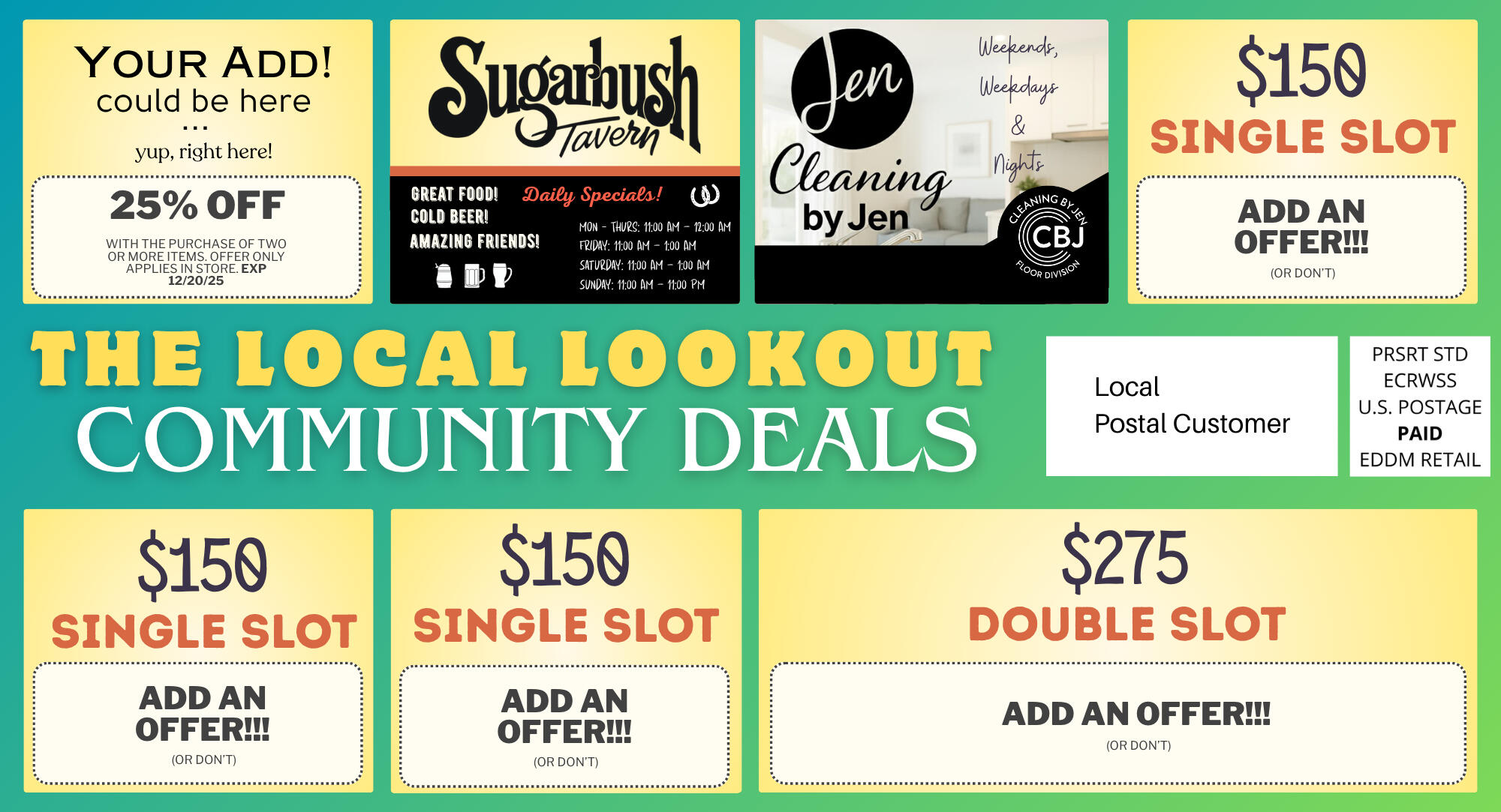 Hello! We're Camrin Merab, and Bradley Munn - both born and raised in the Metro Detroit area - more specifically Chesterfield! It is now our turn to give back to all the local businesses who have helped our small businesses grow throughout the years! More specifically through Marketing! Marketing is such a crucial part of any business, big or small, but is always extremely costly. The postcard we put together here at The Local Lookout offers small businesses the opportunity to market themselves to the community in a big way for a significantly lower cost. By each business contributing to the cost of the postcard, everyone gains exposure and saves money together. We look forward to working with you if I haven't already! Please do not hesitate to reach out to us with any questions!- Cam & Brad